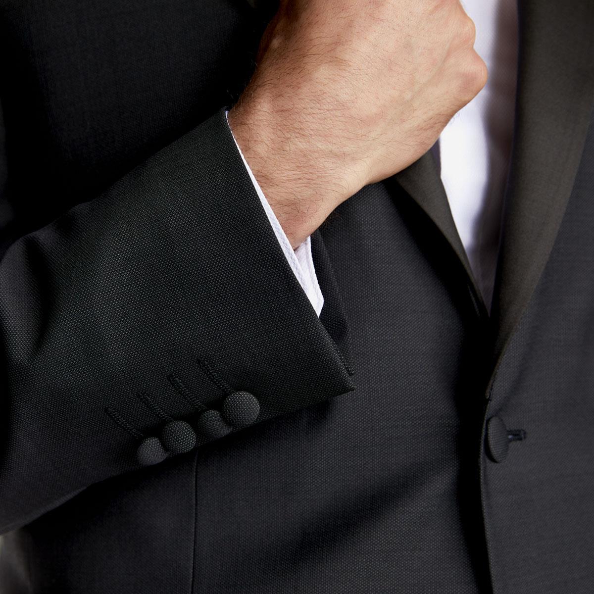 - Γαμπριάτικο κοστούμι σε μαύρο χρώμα. Plain ύφανση