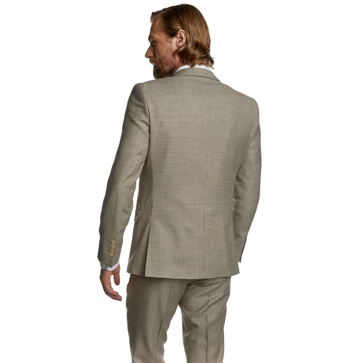 Το κοστούμι αποτελείται από ένα δίκουμπο σακάκι, το οποίο διαθέτει δύο σκισίματα. Ολοκληρώνεται με ένα all time classic άπιετο παντελόνι που φημίζεται για την τέλεια εφαρμογή του. Η γραμμή του είναι slim και αποτελεί ένα διαχρονικό απόκτημα στη ανοιξιάτικη-καλοκαιρινή γκαρνταρόμπα σας. Συνδυάστε το μ’ ένα μονόχρωμο πουκάμισο και επιλέξτε μία γραβάτα σε έντονο χρώμα.