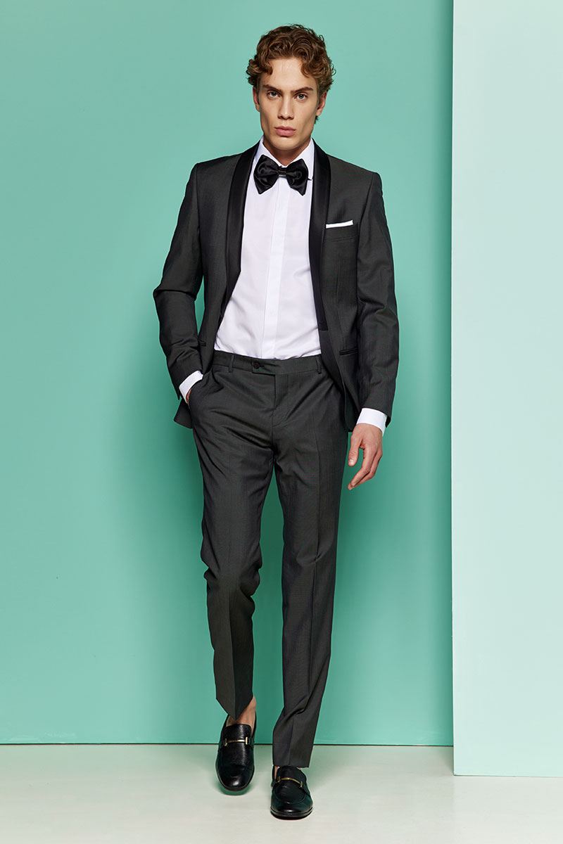 Η εφαρμογή του είναι Slim Fit αναδεικνύοντας τα δυνατά σημεία του σώματός σας. Το σακάκι είναι μονόκουμπο με 2 σκισίματα, διαθέτει μαύρο σατέν στρόγγυλο πέτο καθώς και εντυπωσιακά ντυμένα κουμπιά από το ίδιο σατεν ύφασμα του πέτου! Διαθέτει μία τσέπη πάνω αριστερά ώστε να φιλοξενεί το μαντήλι σας, αλλά και 2 τσέπες φιλέτο επενδεδυμένες από το ίδιο σατέν ύφασμα, αριστερά και δεξιά. Το κοστούμι ολοκληρώνεται με ένα σικάτο άπιετο παντελόνι και την χαρακτηριστική τσάκιση μπροστά. Εμπιστευτείτε μας και ξεχωρίστε μοναδικά!