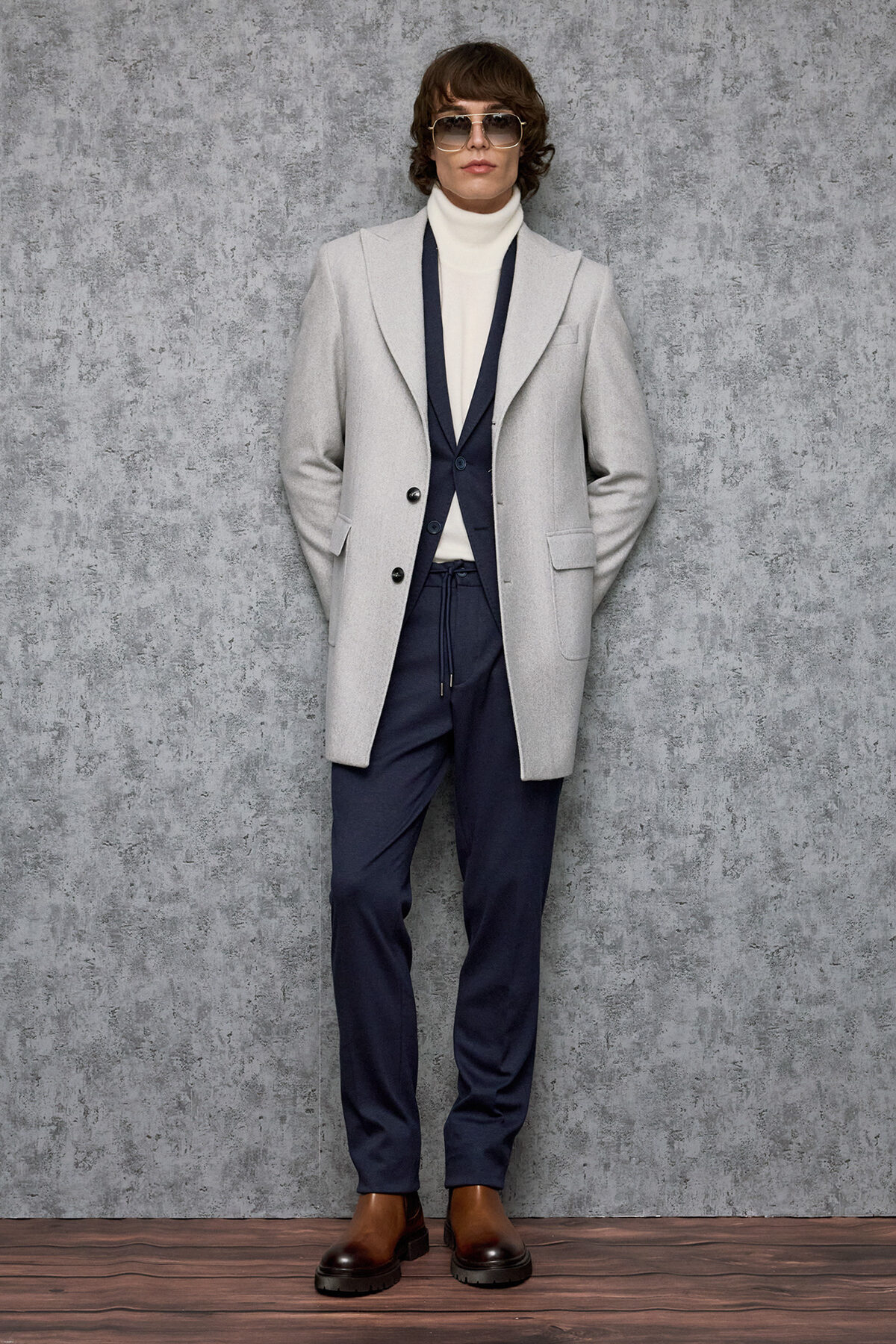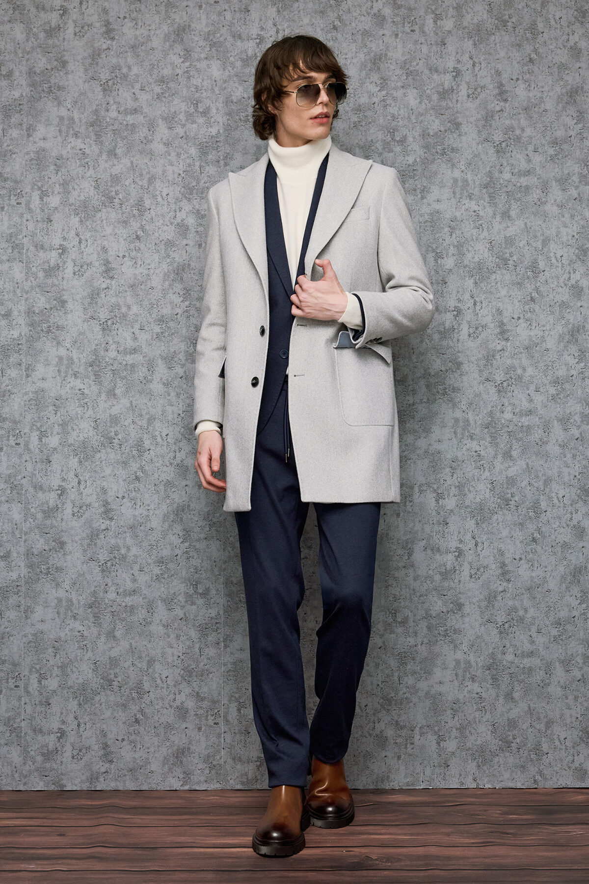 - Ημίπαλτο με Μυτερό Πέτο σε Ανοικτό Γκρι Χρώμα