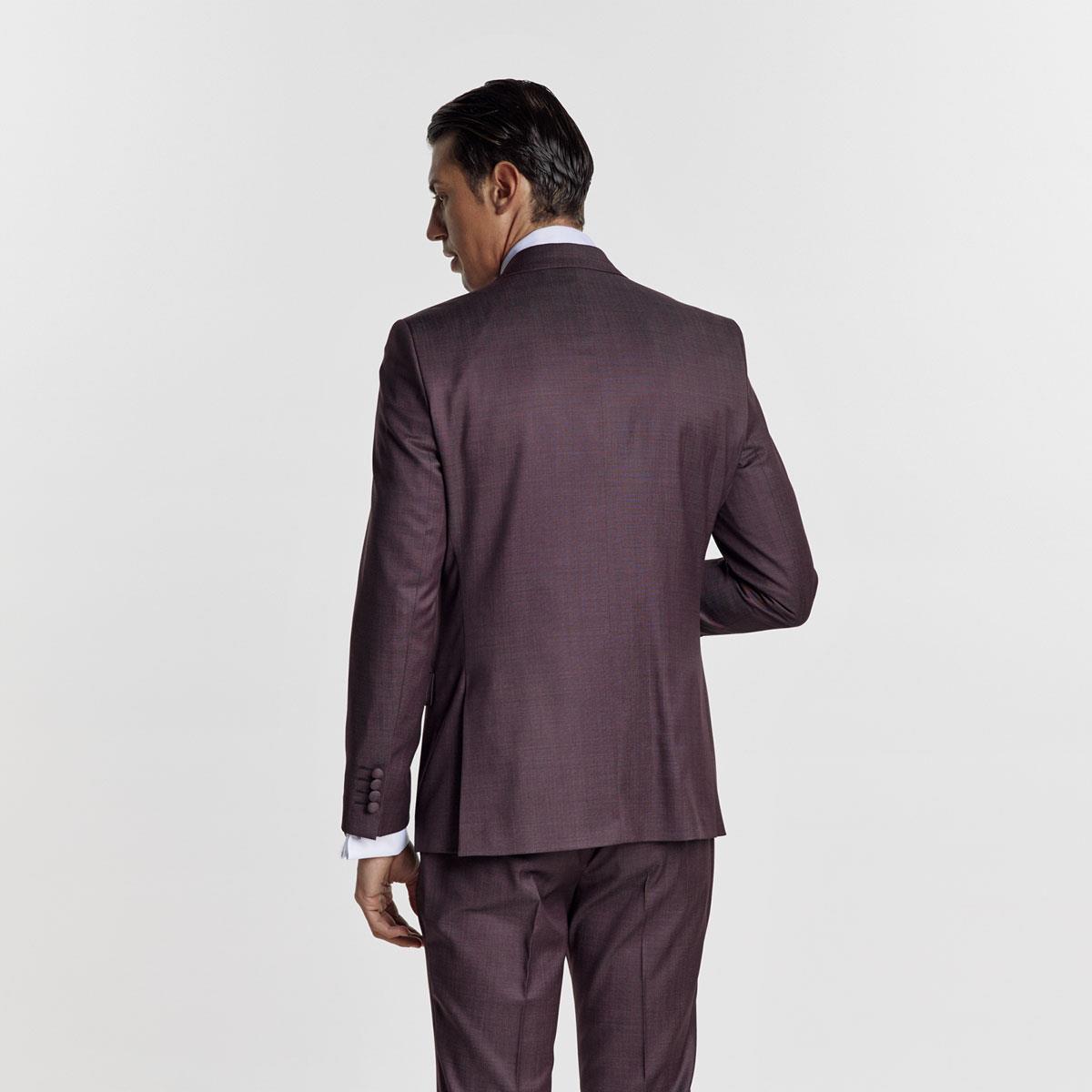 Ένα ολόμαλλο μπορντό κοστούμι εξαιρετικής ραφής και ποιότητας. Τα υφάσματα του οίκου ZIGNONE φημίζονται για την άψογη εφαρμογή τους, για το γεγονός ότι επιτρέπουν στο δέρμα ν’ αναπνέει, ενώ το μοναδικό τους πλεονέκτημα είναι πως δεν τσαλακώνονται εύκολα.