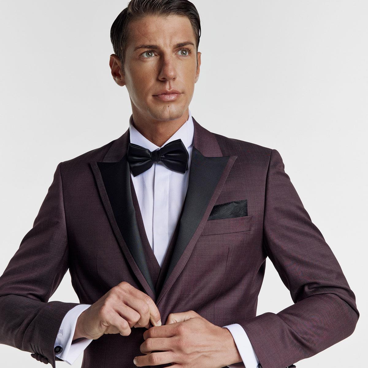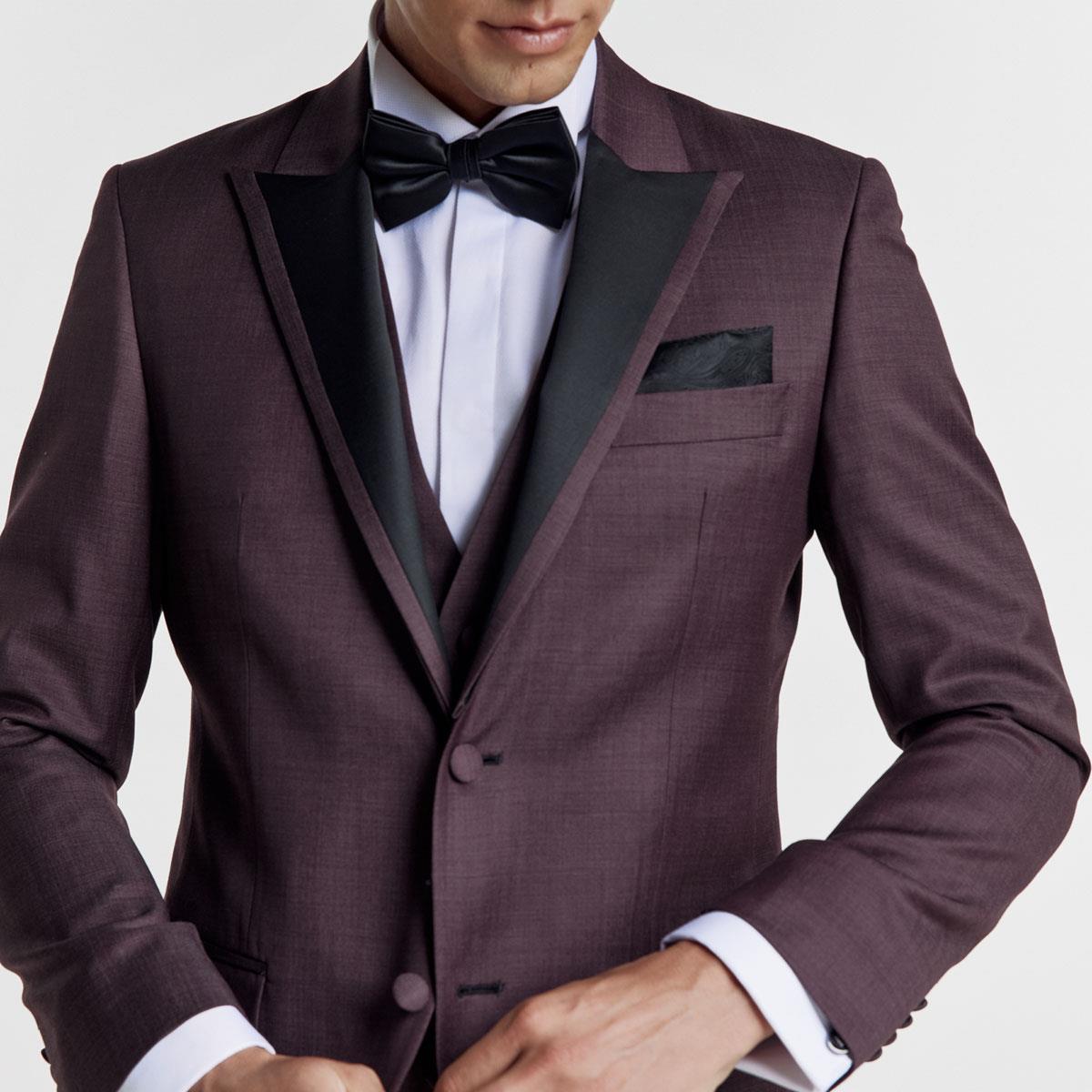 Bizzaro Ολόμαλλο Κοστούμι Γάμου με Γιλέκο 856-081 σε Μπορντό Χρώμα, Slim Fit