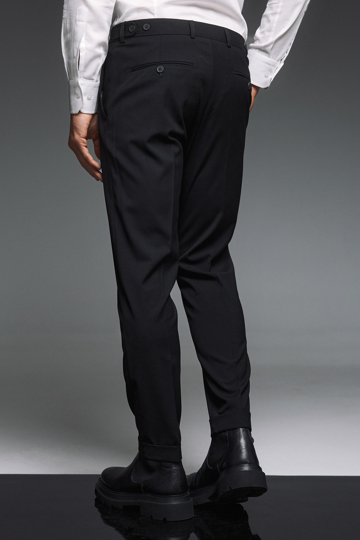 Ανδρικό παντελόνι Με Λάστιχο, σε Μαύρο χρώμα, από BIZZARO. Η γραμμή του είναι Slim Fit, μία κλασσική γραμμή με τελείως ίσιο κόψιμο που λεπταίνει το πόδι από την περιοχή των γοφών μέχρι τον αστράγαλο, και μειώνει τις ασυμμετρίες που έχει το σώµα.