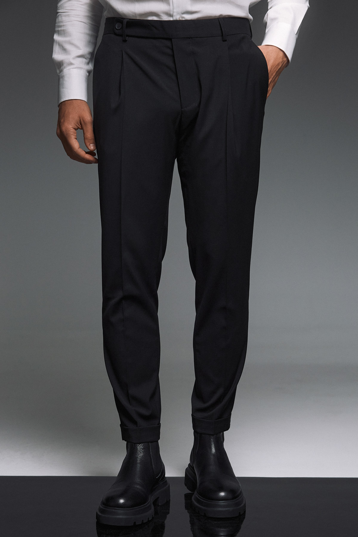 BIZZARO Παντελόνι Μια Πιέτα και Λάστιχο σε Μαύρο Χρώμα