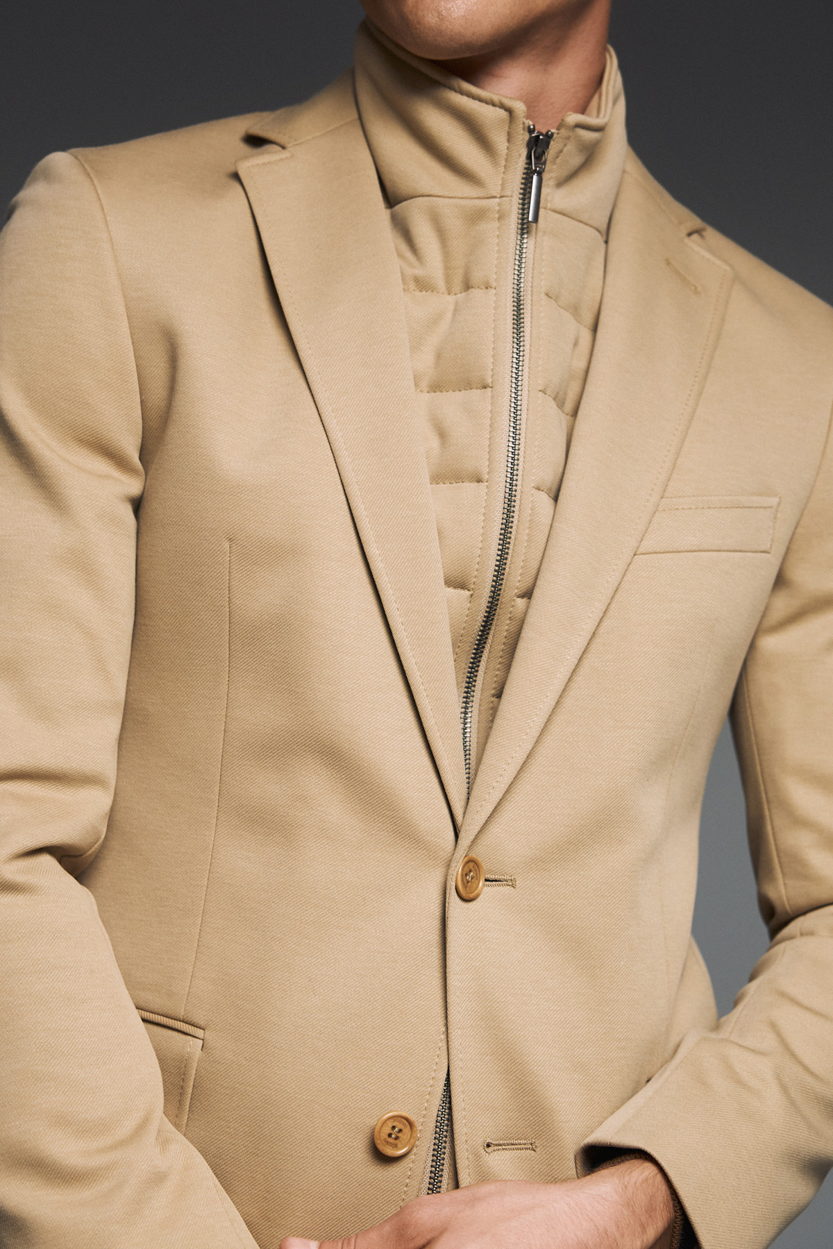 Αποσπώμενο σακάκι του οίκου Bizzaro σε Μπεζ χρώμα, που θα γίνει ο απόλυτος στυλιστικός σας σύμμαχος σε κάθε καιρική συνθήκη. Το πέτο του έχει, ενώ διαθέτει 2 τσέπες που κλείνουν με flap κλείσιμο και αποσπώμενο Blue γιλέκο. Η μικρή τσέπη για το μαντήλι πάνω αριστερά ολοκληρώνει την εικόνα, ενώ η πολυτελής φόδρα αποτελεί μία ακόμα εκλεπτυσμένη λεπτομέρεια.