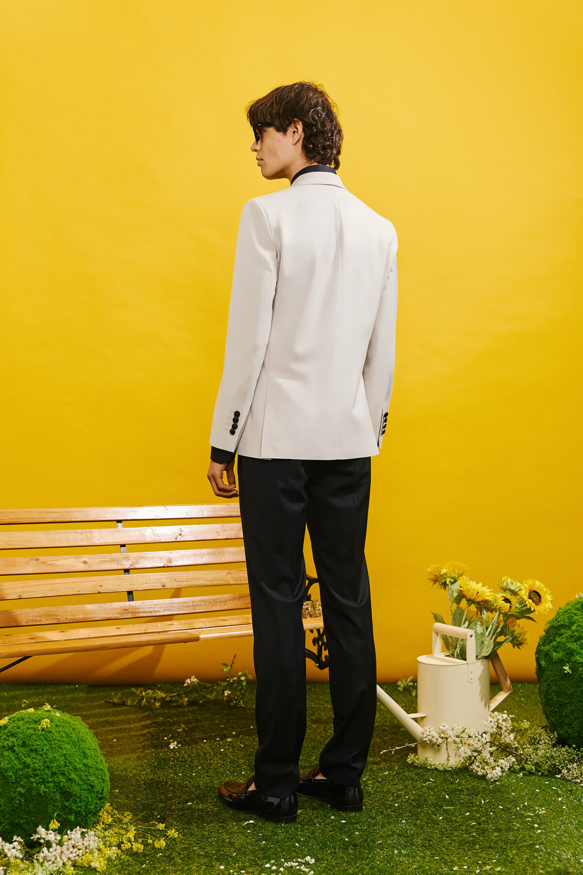 Η εφαρμογή του είναι Slim Fit αναδεικνύοντας τα δυνατά σημεία του σώματός σας. Το σακάκι είναι μονόκουμπο με 2 σκισίματα, διαθέτει μαύρο σατέν στρόγγυλο πέτο καθώς και εντυπωσιακά ντυμένα κουμπιά από το ίδιο σατεν ύφασμα του πέτου! Διαθέτει μία τσέπη πάνω αριστερά ώστε να φιλοξενεί το μαντήλι σας, αλλά και 2 τσέπες φιλέτο επενδεδυμένες από το ίδιο σατέν ύφασμα, αριστερά και δεξιά. Εμπιστευτείτε μας και ξεχωρίστε μοναδικά!
