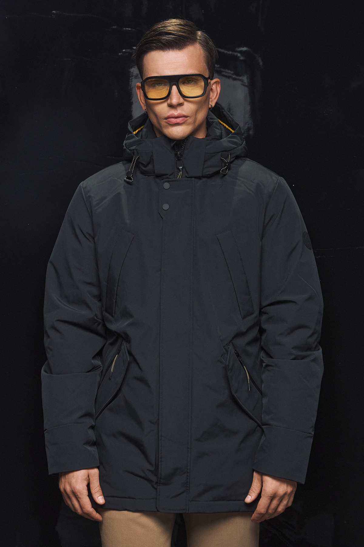 DISTRICT Μπουφάν Μακρύ σε Μαύρο Χρώμα