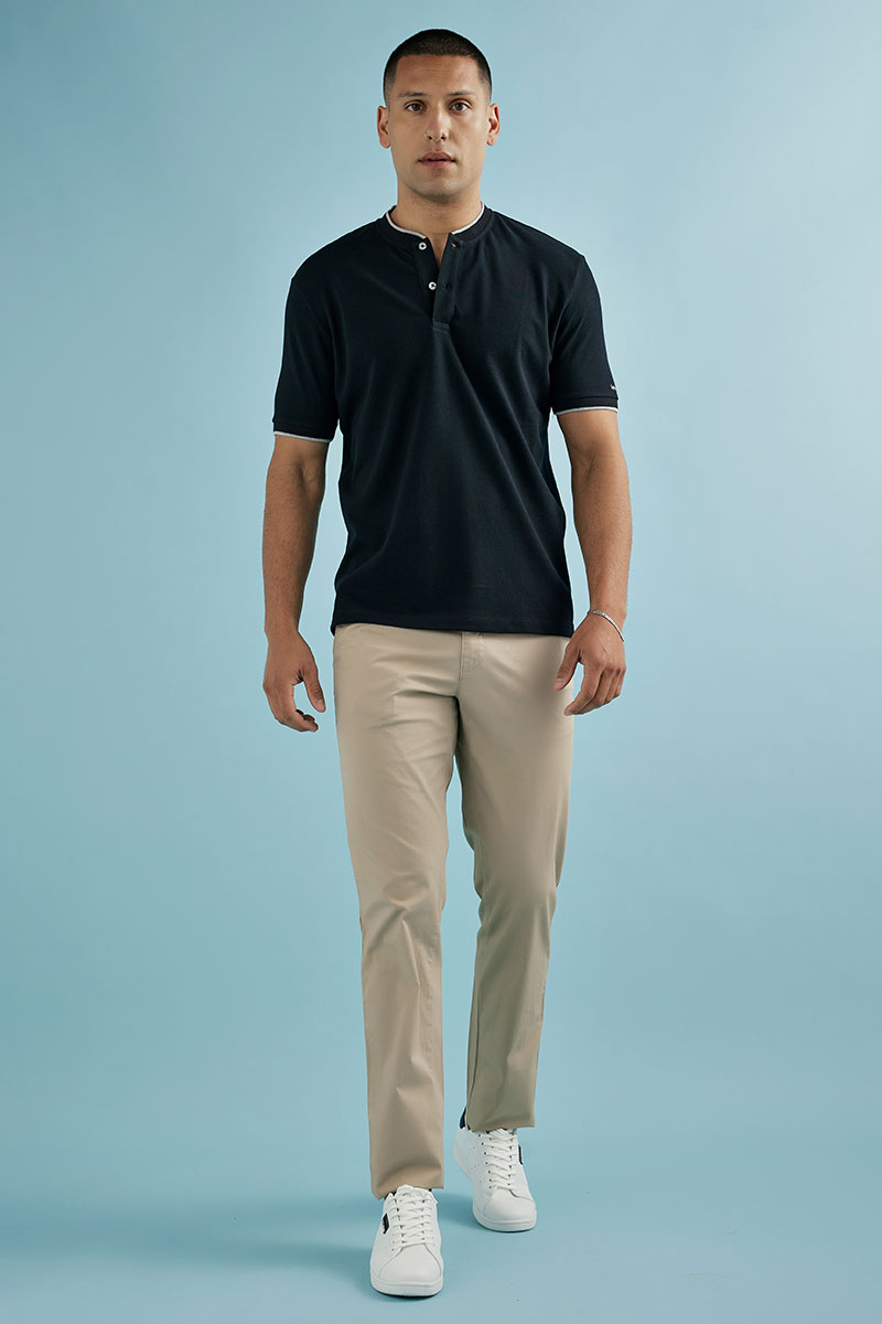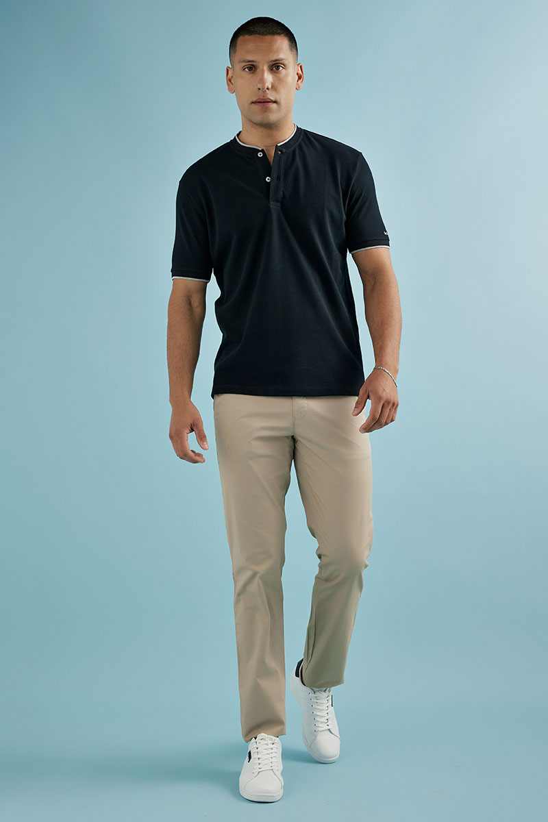Ανδρική κοντομάνικη μπλούζα Guy Laroche, σε Μαύρο χρώμα . Ο λαιμός κλείνει με 2 μικρά κουμπάκια, ώστε να επιλέξετε πόσο ανοιχτό θέλετε να το φορέσετε. Στην αριστερή πλευρά, η μπλούζα διαθέτει ένα εκλεπτυσμένο κεντημένο λογότυπο . Η μπλούζα Guy Laroche είναι regular fit με αποτέλεσμα να κολακεύει κάθε σωματότυπο. Η σύνθεσή της είναι 100% βαμβάκι, ζέρσεϊ ποιότητας, ιδανική για τις καλοκαιρινές σας εξορμήσεις.