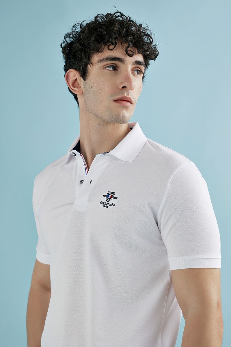Ανδρική κοντομάνικη μπλούζα πόλο Guy Laroche, σε λευκό χρώμα . Ο λαιμός κλείνει με 3 μικρά κουμπάκια, ώστε να επιλέξετε πόσο ανοιχτό θέλετε να το φορέσετε. Στην αριστερή πλευρά, η μπλούζα διαθέτει ένα εκλεπτυσμένο κεντημένο λογότυπο . Η πόλο μπλούζα Guy Laroche είναι regular fit με αποτέλεσμα να κολακεύει κάθε σωματότυπο. Η σύνθεσή της είναι 100% βαμβάκι, ζέρσεϊ ποιότητας, ιδανική για τις καλοκαιρινές σας εξορμήσεις.