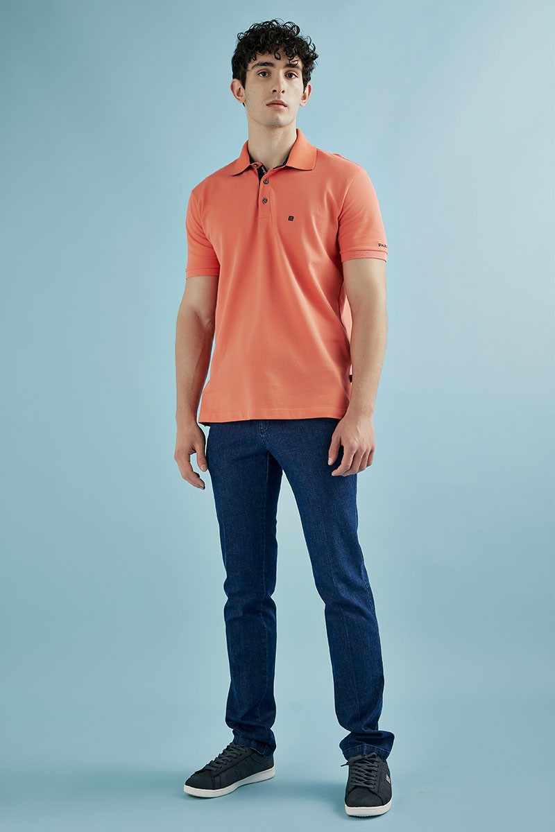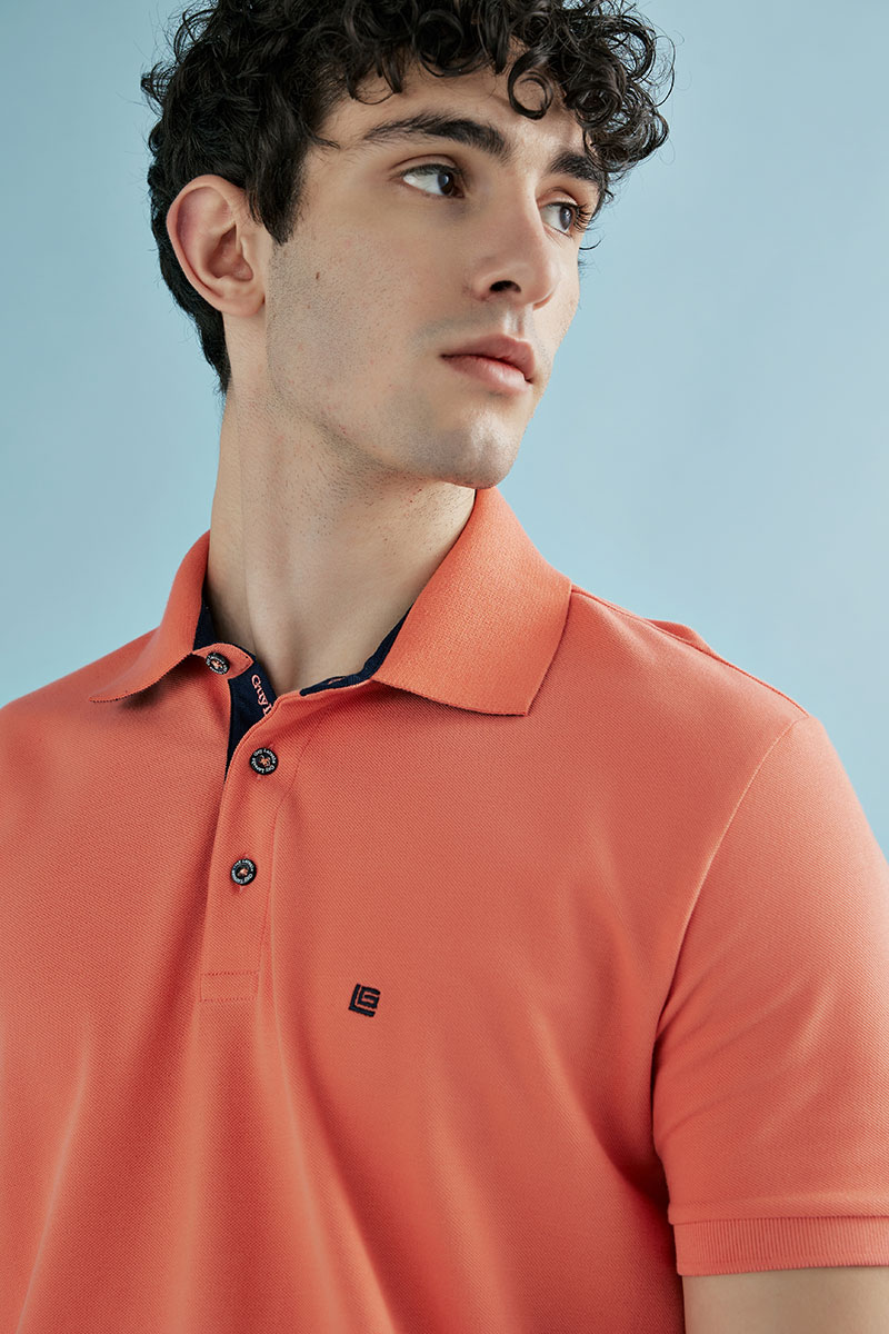 Ανδρική κοντομάνικη μπλούζα πόλο Guy Laroche, σε Σομόν χρώμα . Ο λαιμός κλείνει με 3 μικρά κουμπάκια, ώστε να επιλέξετε πόσο ανοιχτό θέλετε να το φορέσετε. Στην αριστερή πλευρά, η μπλούζα διαθέτει ένα εκλεπτυσμένο κεντημένο λογότυπο. Η πόλο μπλούζα Guy Laroche είναι regular fit με αποτέλεσμα να κολακεύει κάθε σωματότυπο. Η σύνθεσή της είναι 100% βαμβάκι, ζέρσεϊ ποιότητας, ιδανική για τις καλοκαιρινές σας εξορμήσεις.