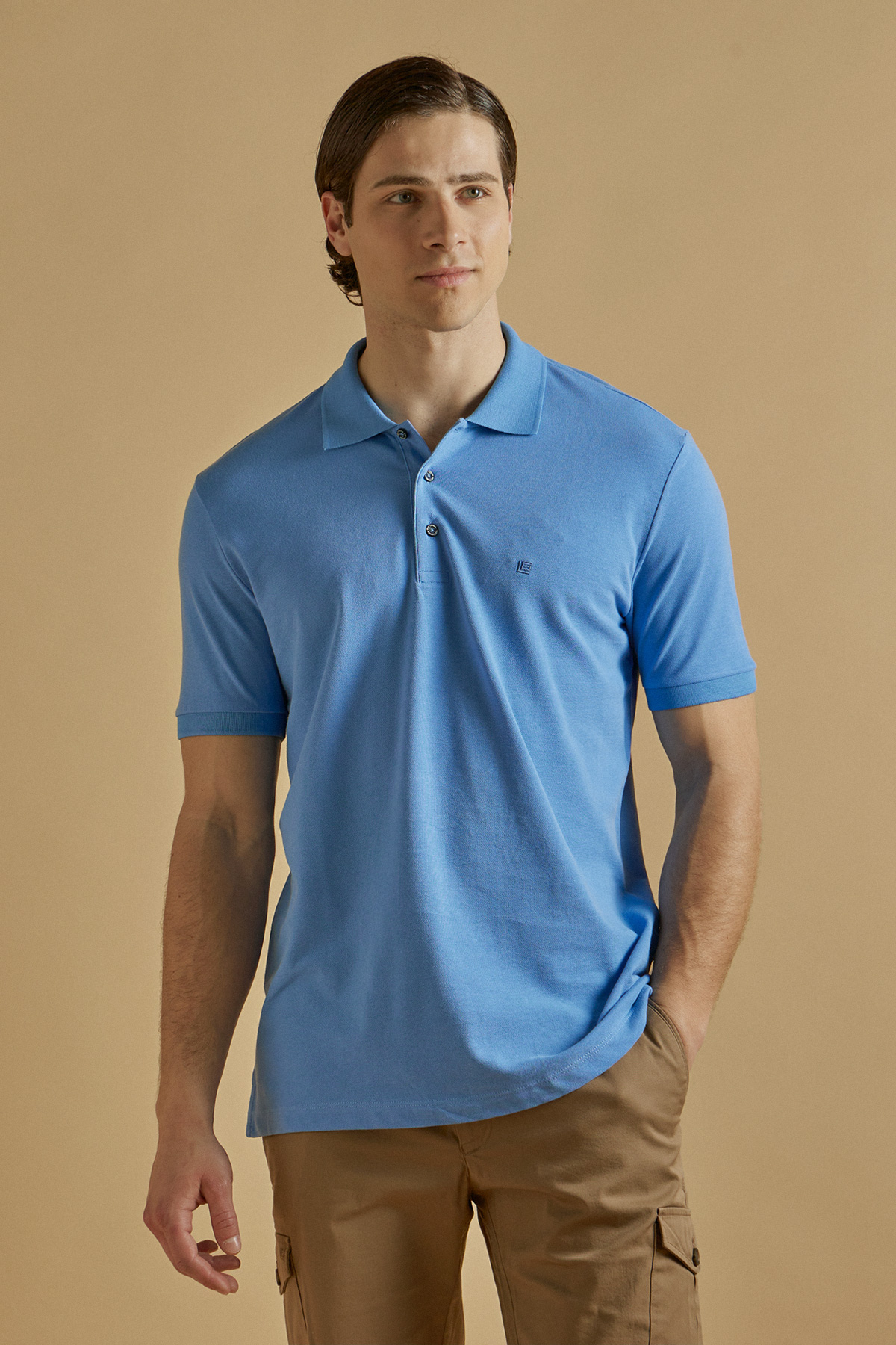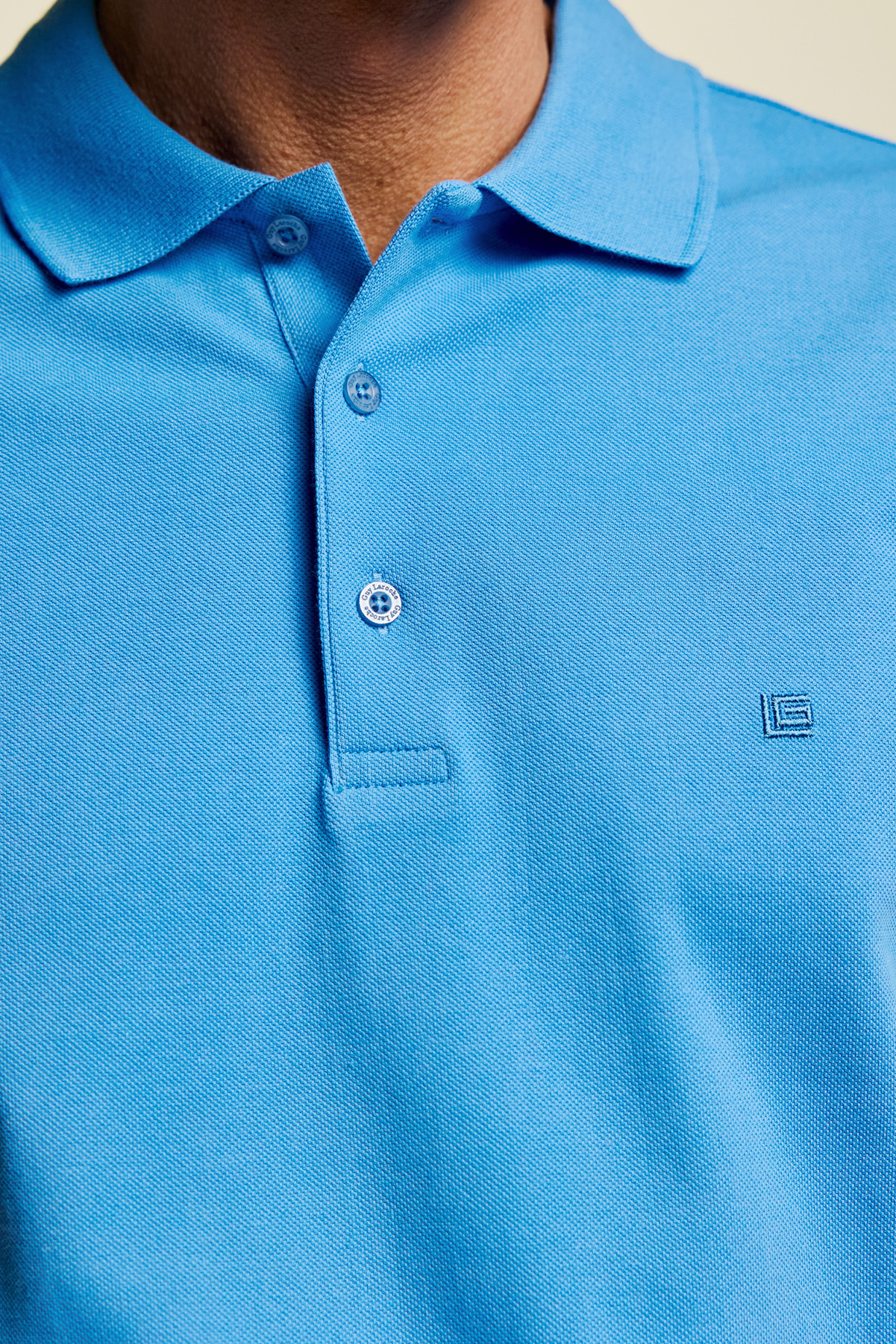 Ανδρική κοντομάνικη μπλούζα πόλο Guy Laroche, σε Ανοίκτο Μπλε χρώμα . Ο λαιμός κλείνει με 3 μικρά κουμπάκια, ώστε να επιλέξετε πόσο ανοιχτό θέλετε να το φορέσετε. Στην αριστερή πλευρά, η μπλούζα διαθέτει ένα εκλεπτυσμένο κεντημένο λογότυπο σε Ανοίκτο Μπλε χρώμα. Η πόλο μπλούζα Guy Laroche είναι regular fit με αποτέλεσμα να κολακεύει κάθε σωματότυπο. Η σύνθεσή της είναι 100% βαμβάκι, ζέρσεϊ ποιότητας, ιδανική για τις καλοκαιρινές σας εξορμήσεις.