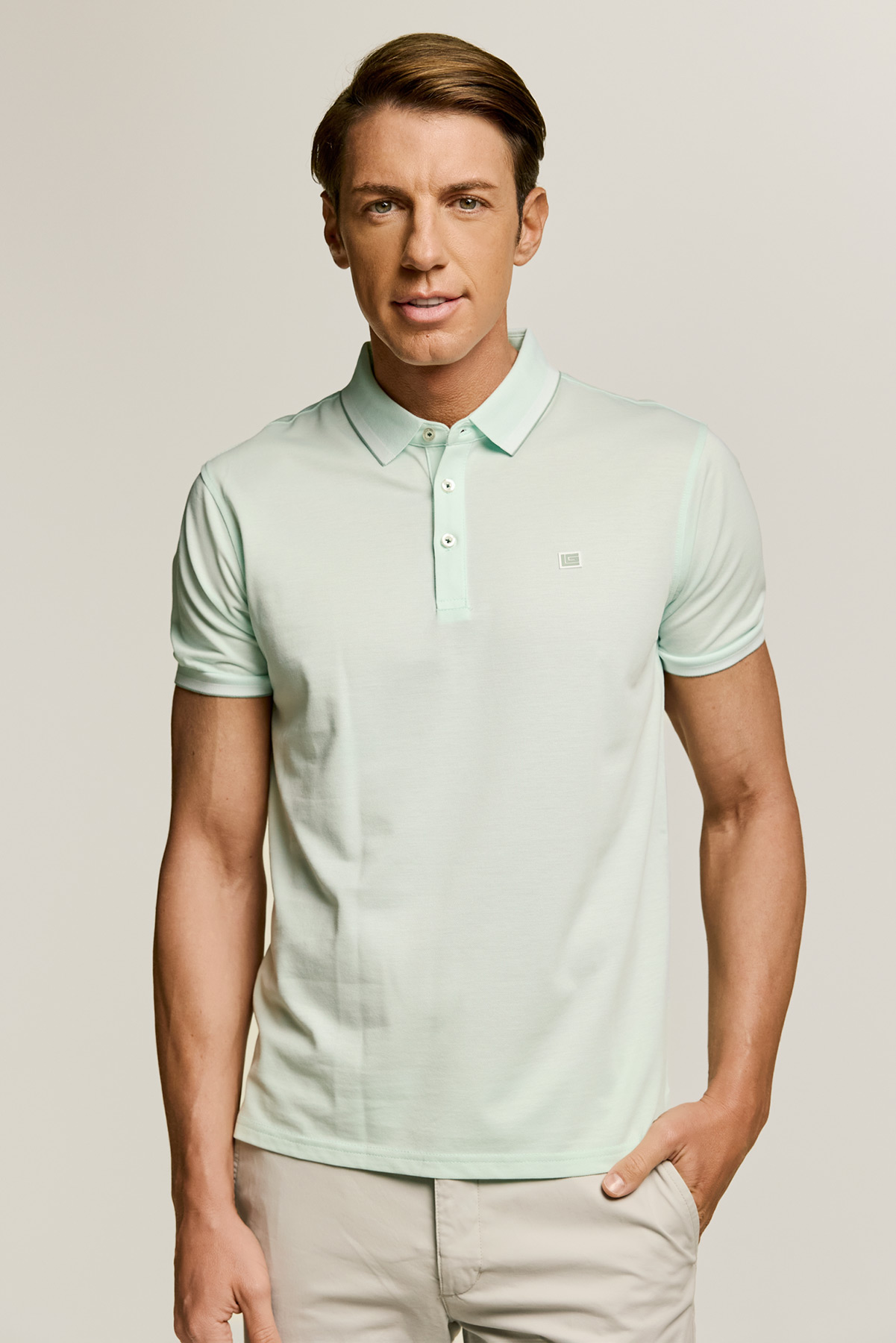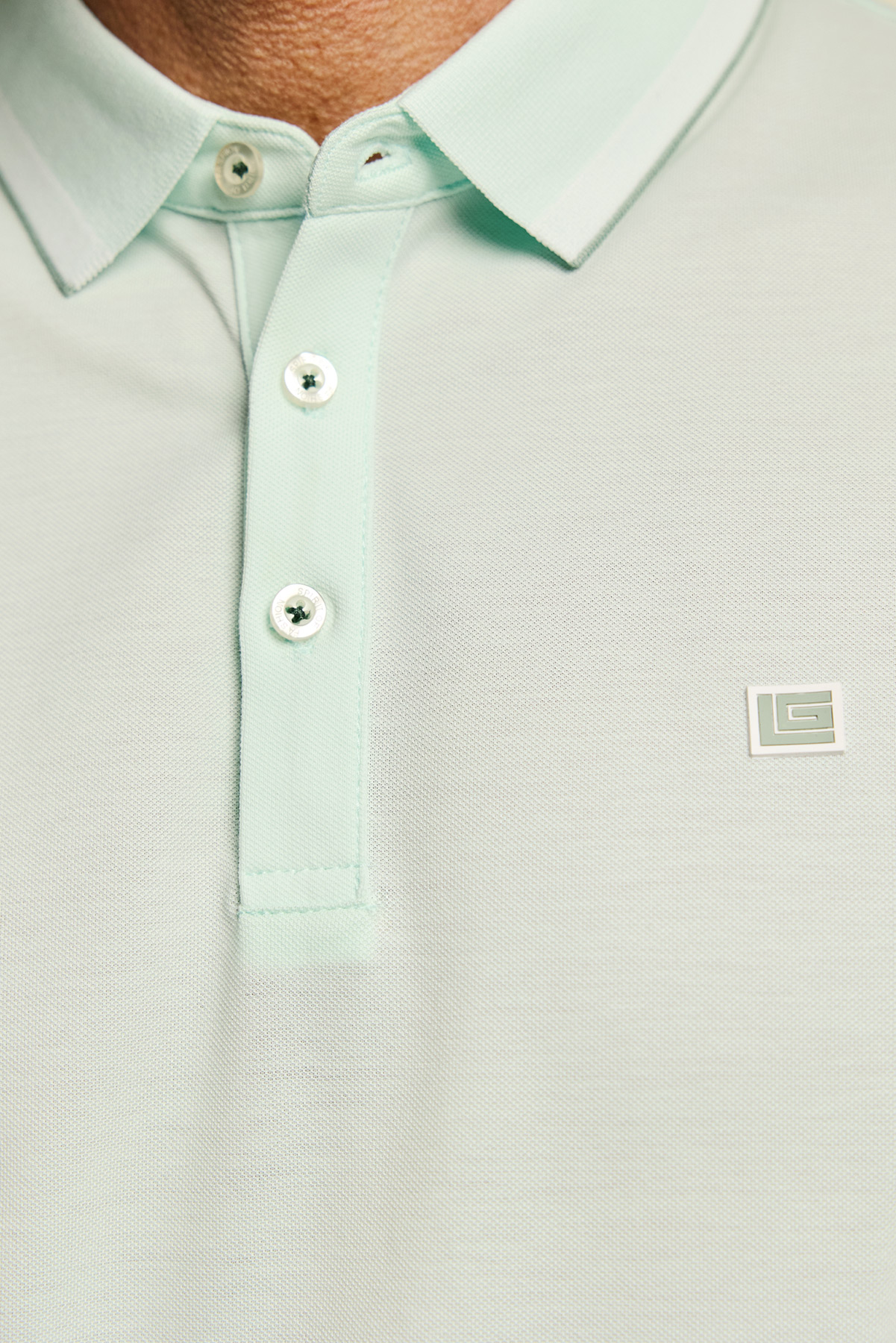 Ανδρική κοντομάνικη μπλούζα πόλο Guy Laroche,σε MENTA χρώμα . Ο λαιμός κλείνει με 3 μικρά κουμπάκια, ώστε να επιλέξετε πόσο ανοιχτό θέλετε να το φορέσετε. Στην αριστερή πλευρά, η μπλούζα διαθέτει ένα εκλεπτυσμένο κεντημένο λογότυπο σε Γαλάζιο χρώμα. Η πόλο μπλούζα Guy Laroche είναι regular fit με αποτέλεσμα να κολακεύει κάθε σωματότυπο. Η σύνθεσή της είναι 100% βαμβάκι, ζέρσεϊ ποιότητας, ιδανική για τις καλοκαιρινές σας εξορμήσεις.