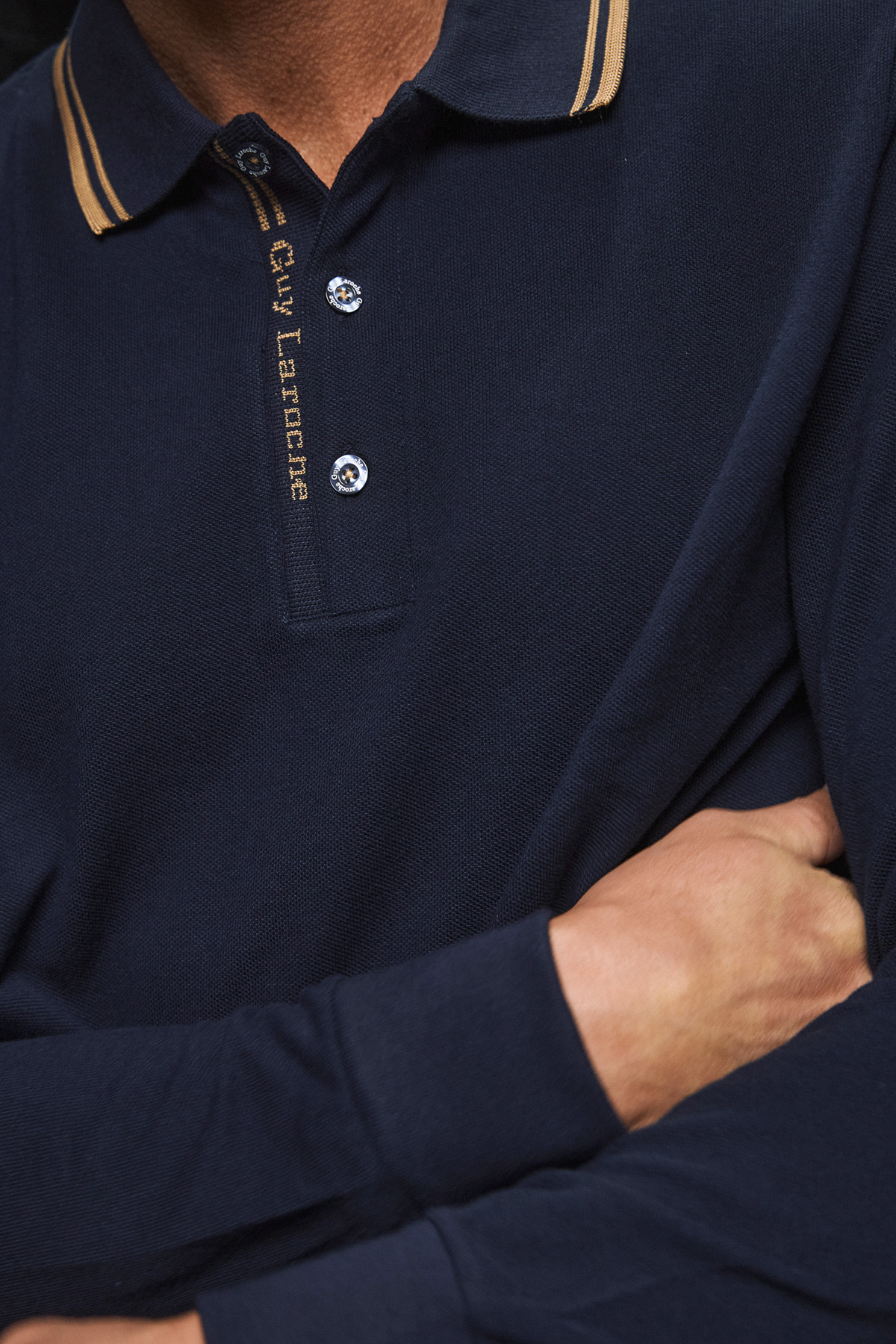Ο λαιμός κλείνει με 2 μικρά κουμπάκια, ώστε να επιλέξετε πόσο ανοιχτό θέλετε να τον φορέσετε. Στην αριστερή πλευρά, η μπλούζα διαθέτει ένα διακριτικό κεντημένο λογότυπο στο ίδιο χρώμα της μπλούζας. Η πόλο μπλούζα Guy Laroche έχει regular fit με αποτέλεσμα να κολακεύει κάθε σωματότυπο. Η σύνθεσή της είναι 100% βαμβάκι, ζέρσεϊ ποιότητας, με αποτέλεσμα να σας ζεσταίνει χωρίς να είναι χοντρή.