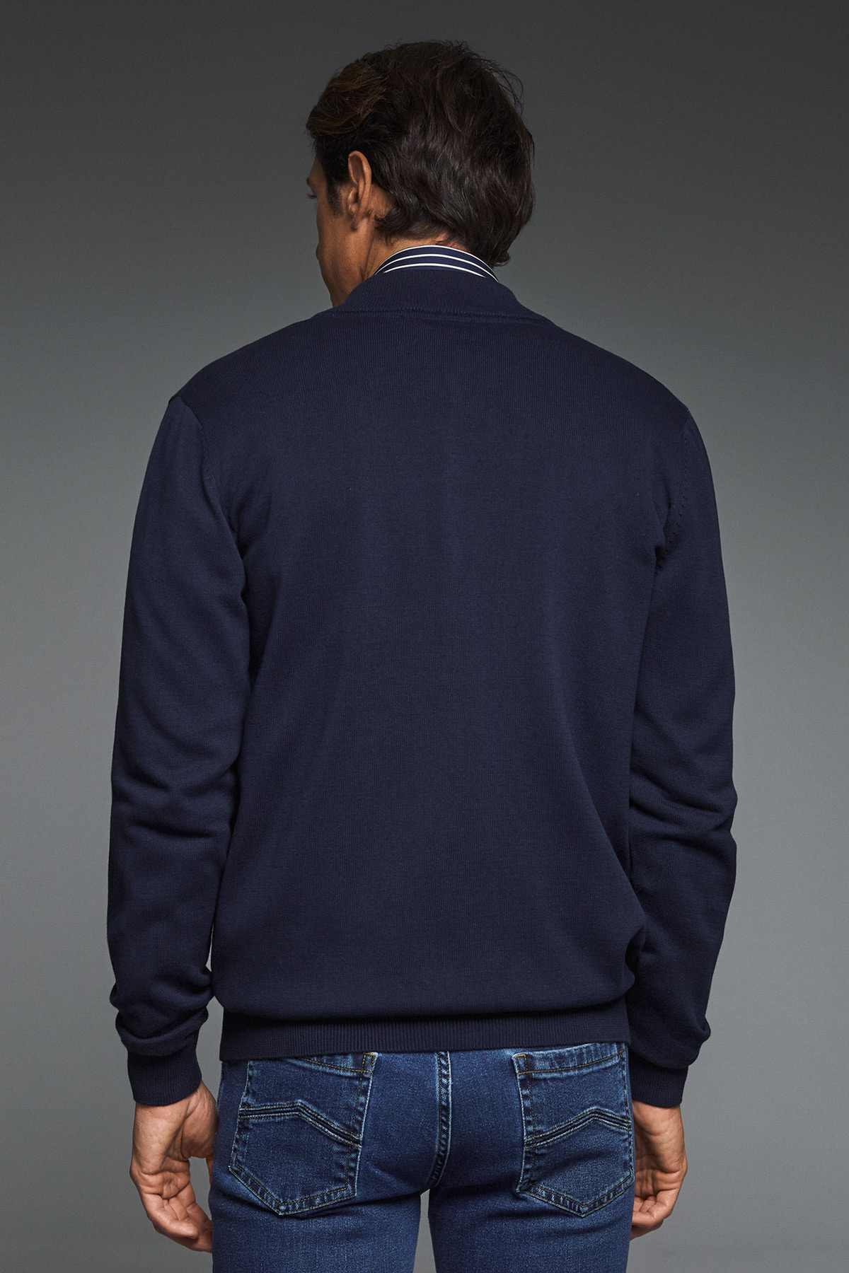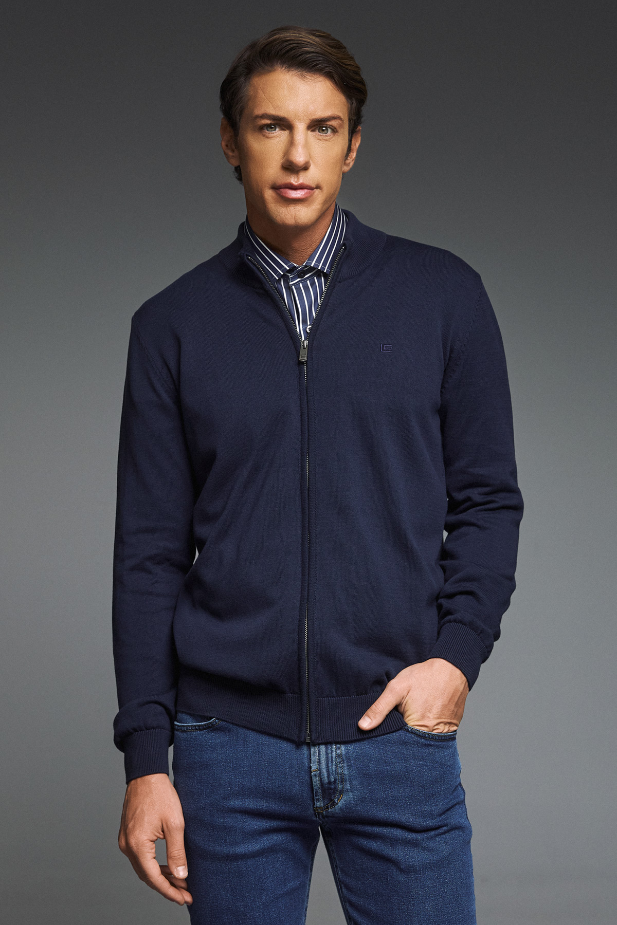 Η ζακέτα κλείνει με φερμουάρ κουμπιά και καταλήγει σε μία λούπετο λαιμόκοψη που αναδεικνύει το πουκάμισο που φοράτε από μέσα. Τα φινιρίσματα της ζακέτας καταλήγουν σε λεπτή ριπ ύφανση. Η γραμμή της ζακέτας είναι κανονική ώστε να την φοράτε με άνεση πάνω από κάθε σας πουκάμισο.