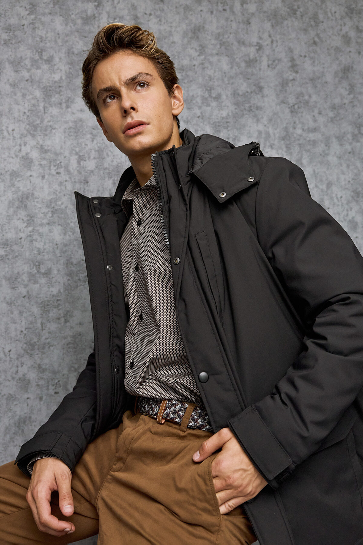 Μπουφάν Με Κουκούλα Guy Laroche για να δημιουργήσετε smart casual εμφανίσεις με ιδιαίτερο στυλ. Το μπουφάν έχει BLACK χρώμα, διαθέτει εντυπωσιακό plain ύφασμά που είναι εξαιρετικά ανθεκτικό,αδιάβροχο και ζεστό.