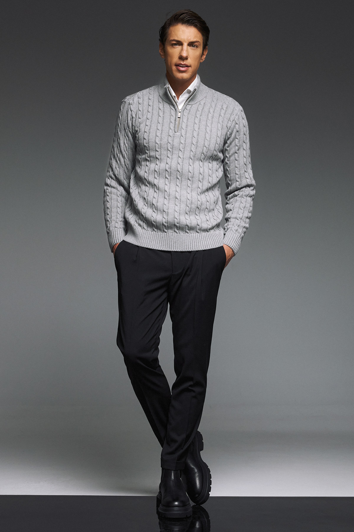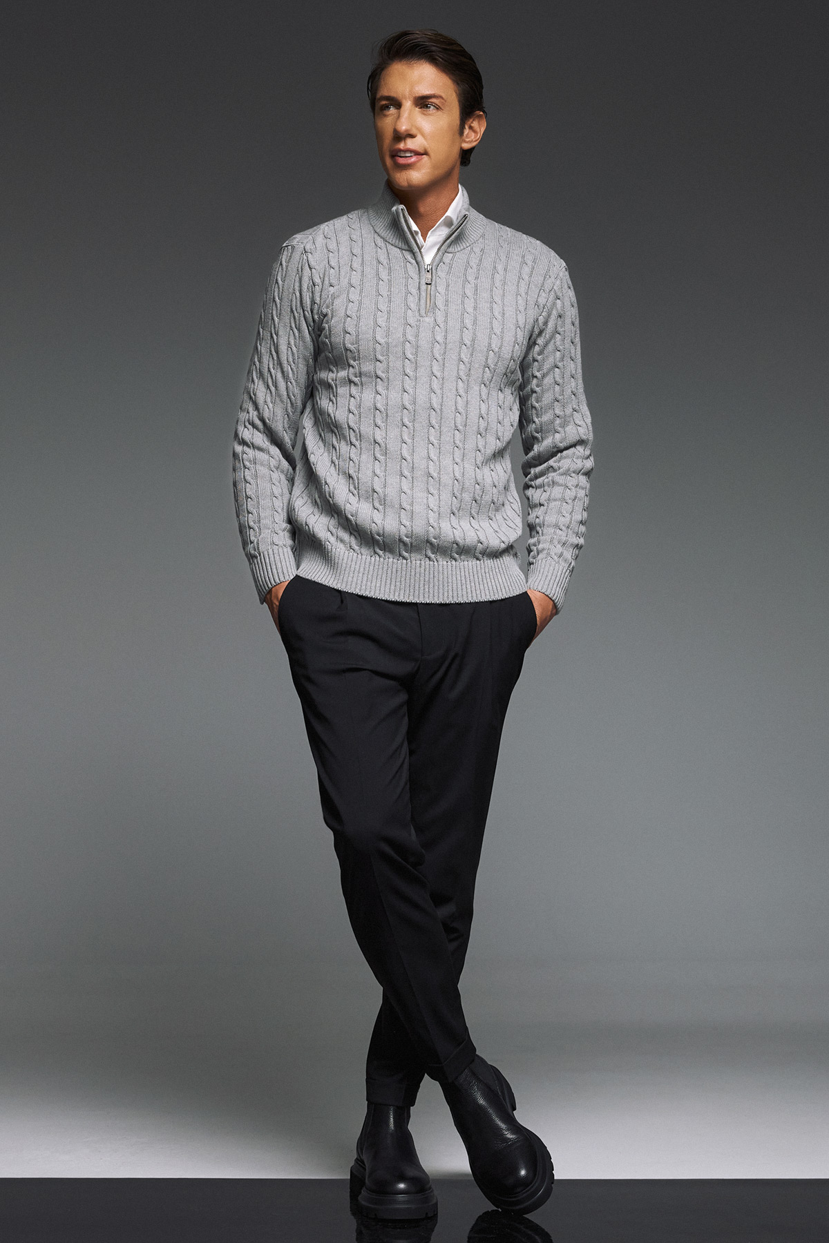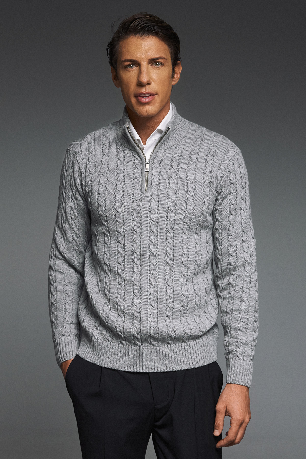 Guy Laroche Πλεκτή Βαμβακερή Μπλούζα με Φερμουάρ σε Grey Χρώμα
