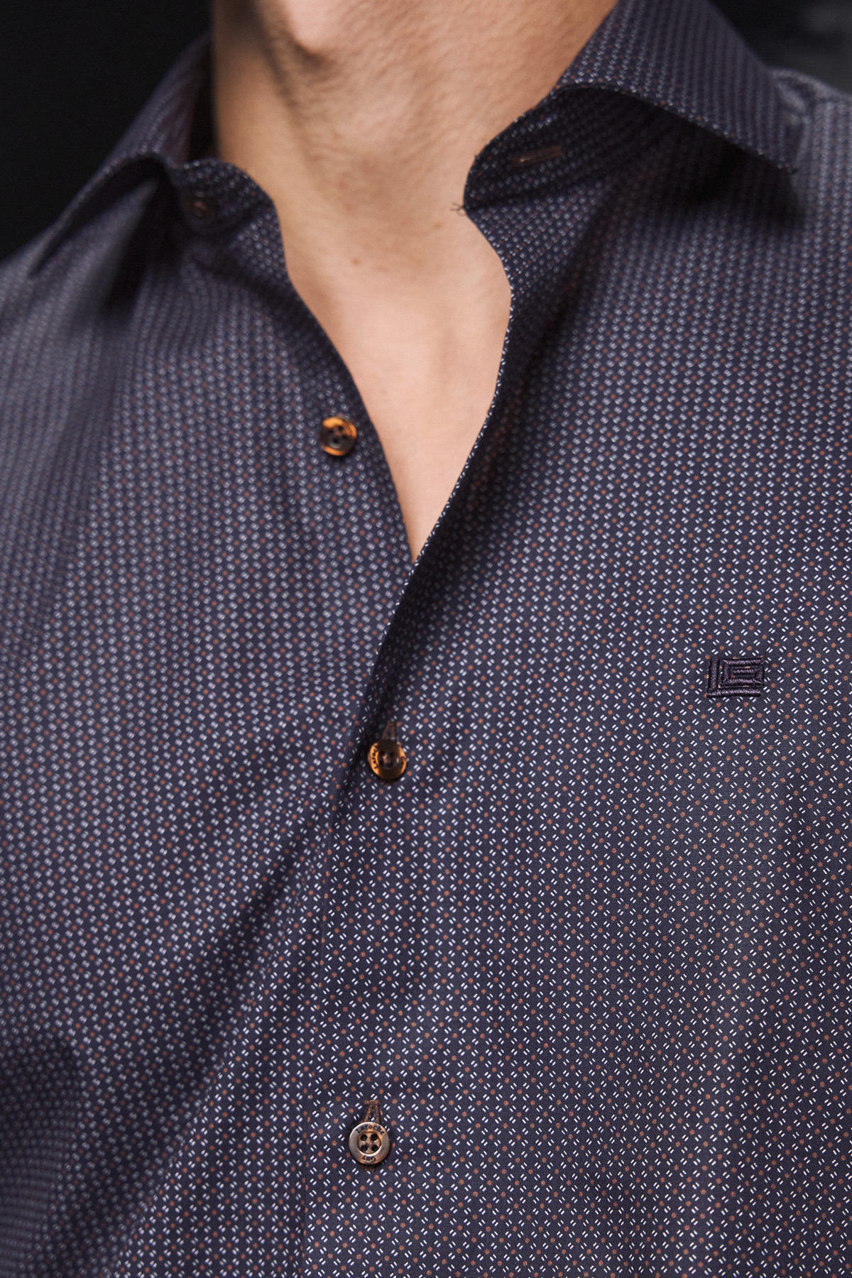Ο γιακάς του πουκαμίσου Guy Laroche είναι σε ιταλικό στυλ με σκληρό κολάρο. Ο γιακάς διαθέτει αφαιρούμενες μπανέλες και είναι καλό να τις αφαιρείτε όταν το πλένετε και το σιδερώνετε. Τα κουμπιά του πουκάμισου έχουν υπέροχο Μπορντό χρώμα. Οι μανσέτες είναι απλές και κλείνουν με 2 κουμπιά στο ίδιο χρώμα με τα κεντρικά. Η γραμμή του πουκαμίσου είναι Classic fit με αποτέλεσμα να αναδεικνύει τις πλάτες και τους ώμους σας.